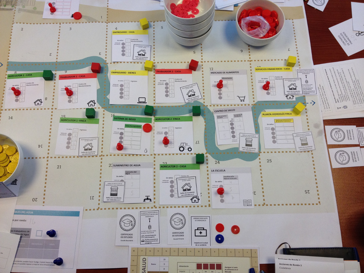 Players learn of the benefits of investment in risk reduction before the flood strikes.