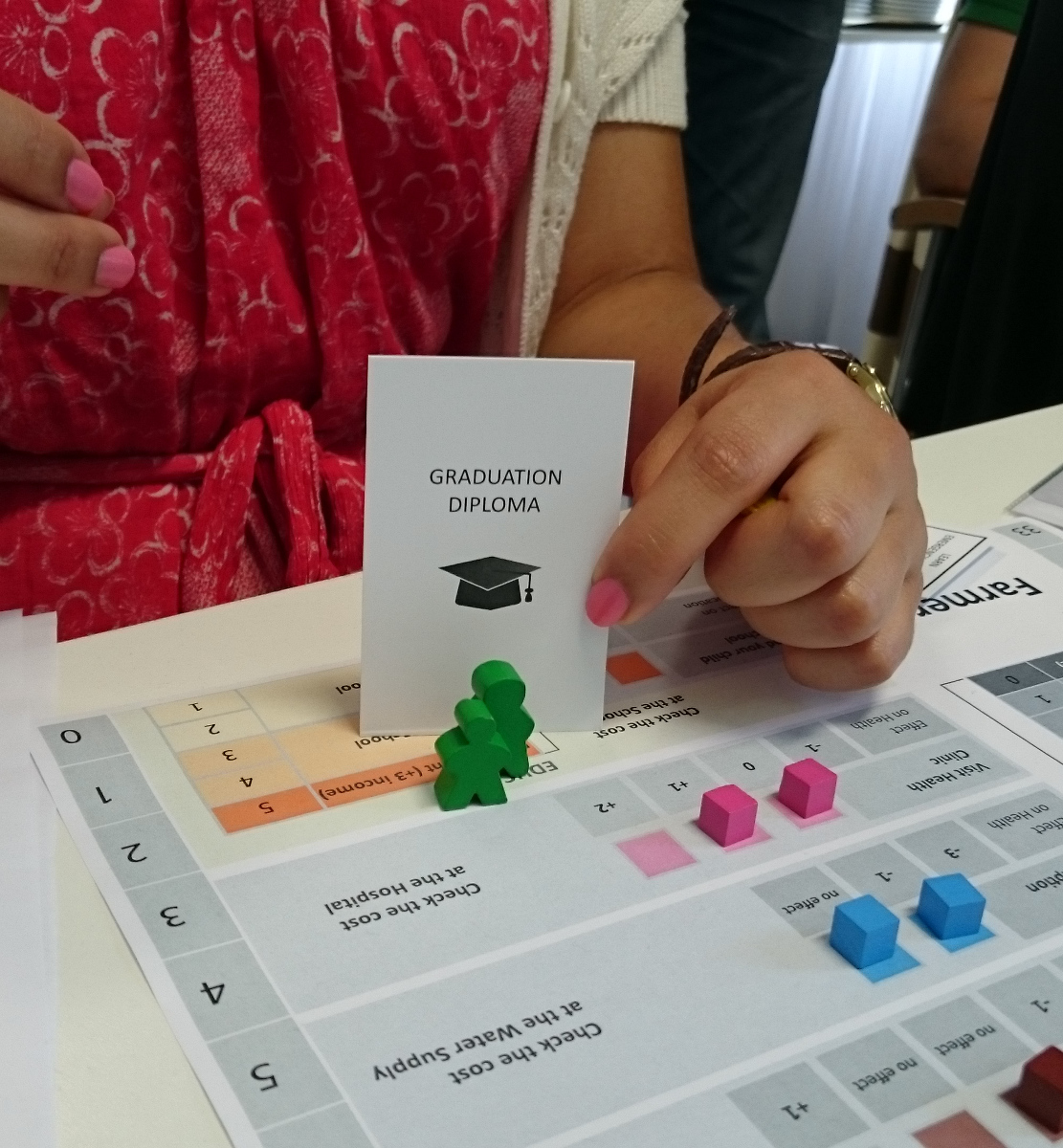 Players experience all these complex ideas with a simple and concrete game elements so that participants can connect with their daily realities.