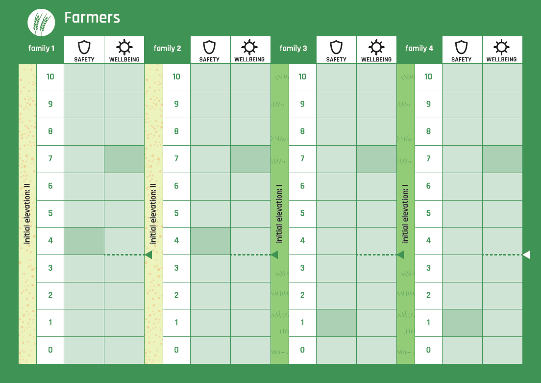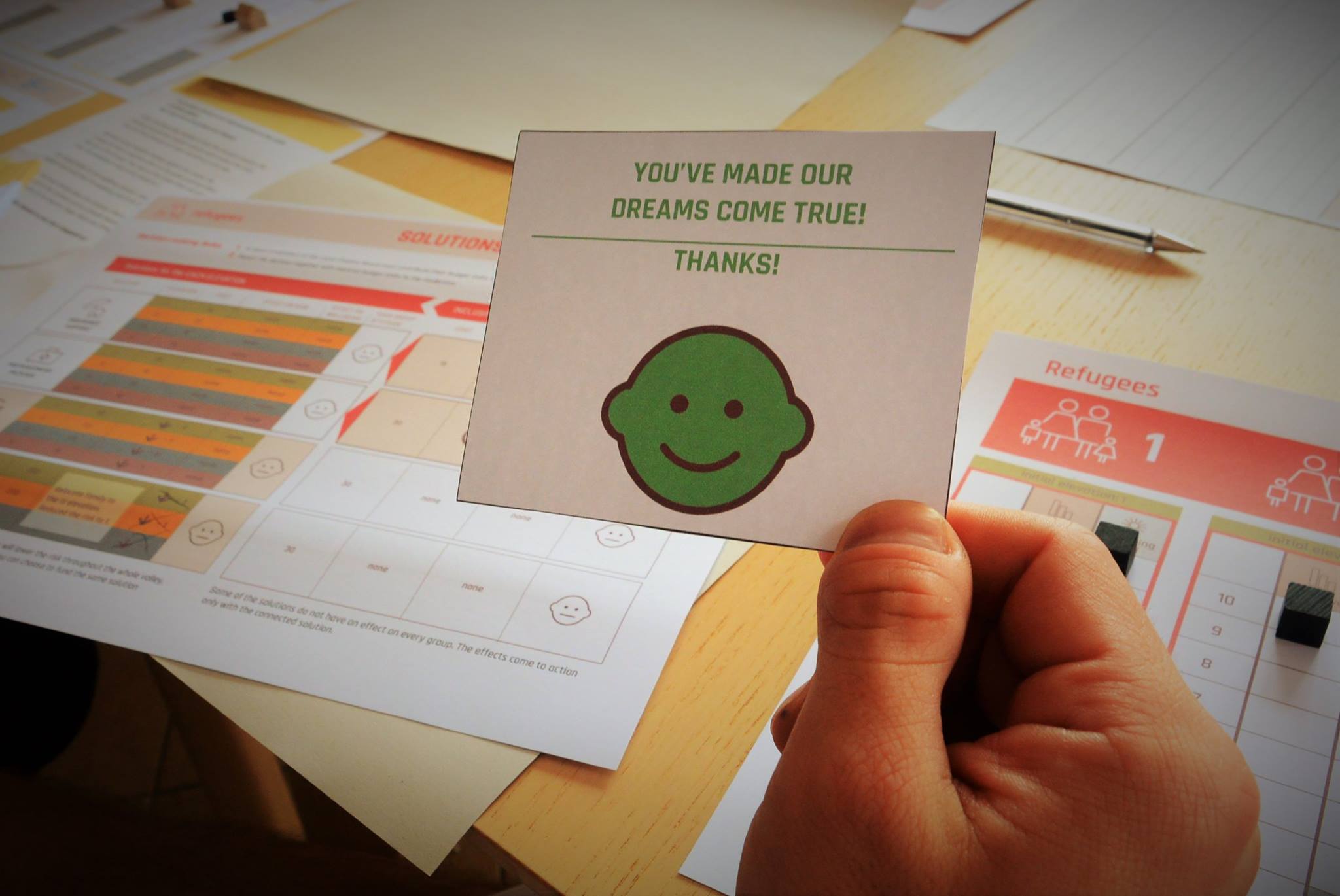 Players observe how their actions influenced the outcome of each round and the living conditions (wellbeing and safety) of the groups they are responsible for.