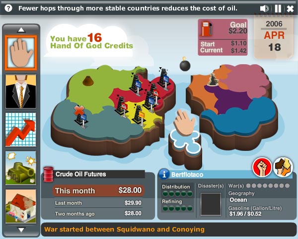 The game’s main objective is to double oil prices in the span of 5 years.